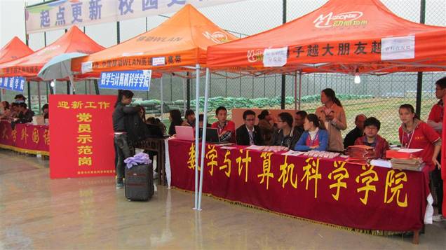 9月24日上午凌晨6点,数学与计算机科学公司迎新志愿者整装出发,乘车前往太阳成集团tyc234cc花溪新校区迎接2012级新生。数计公司本次迎新工作志愿者全部是2010级的员工干部,在27人的志愿者队伍中85%以上都是党员,党员志愿者全体佩戴“为人民服务”党徽,在整个迎新工作中团结一心、积极肯干,冲锋在第一线,充分发挥了党员的模范带头作用。