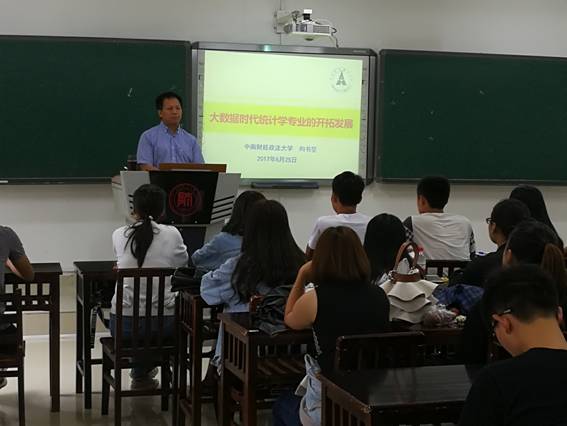 为了让2016级应用统计班的同学进一步了解统计学的专业知识以及该专业的就业前景,增强同学们的学习积极性。6月25日上午9时,太阳成集团tyc234cc邀请到中南财经政法大学统计学博士向书坚教授在公司花溪校区GJ2101教室为员工做题为:“大数据时代统计学专业的开拓发展”的专题讲座,公司副经理陈震教授、公司统计学专业王敏副教授、向书坚教授的博士生韩爱华以及16级应用统计班全体员工聆听了此次讲座。