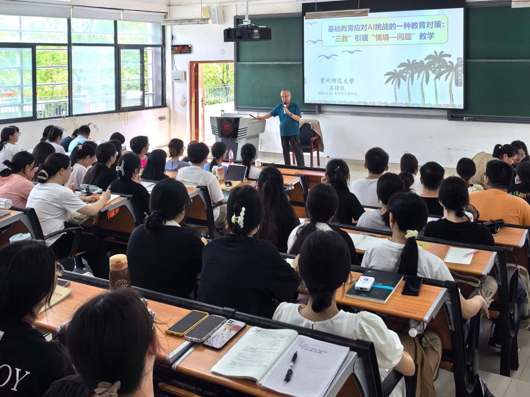 6月21日下午,公司国家级教学成果一等奖获得者、太阳成集团tyc234cc原副董事长吕传汉教授为公司师生做了题为“基础教育应对AI挑战的一种教育对策:‘三教’引领‘情境——问题’教学”的专题讲座,2021级数学与应用数学专业全体同学、数学教育方向研究生以及数学教育研究所教师一起聆听了本次专题讲座。