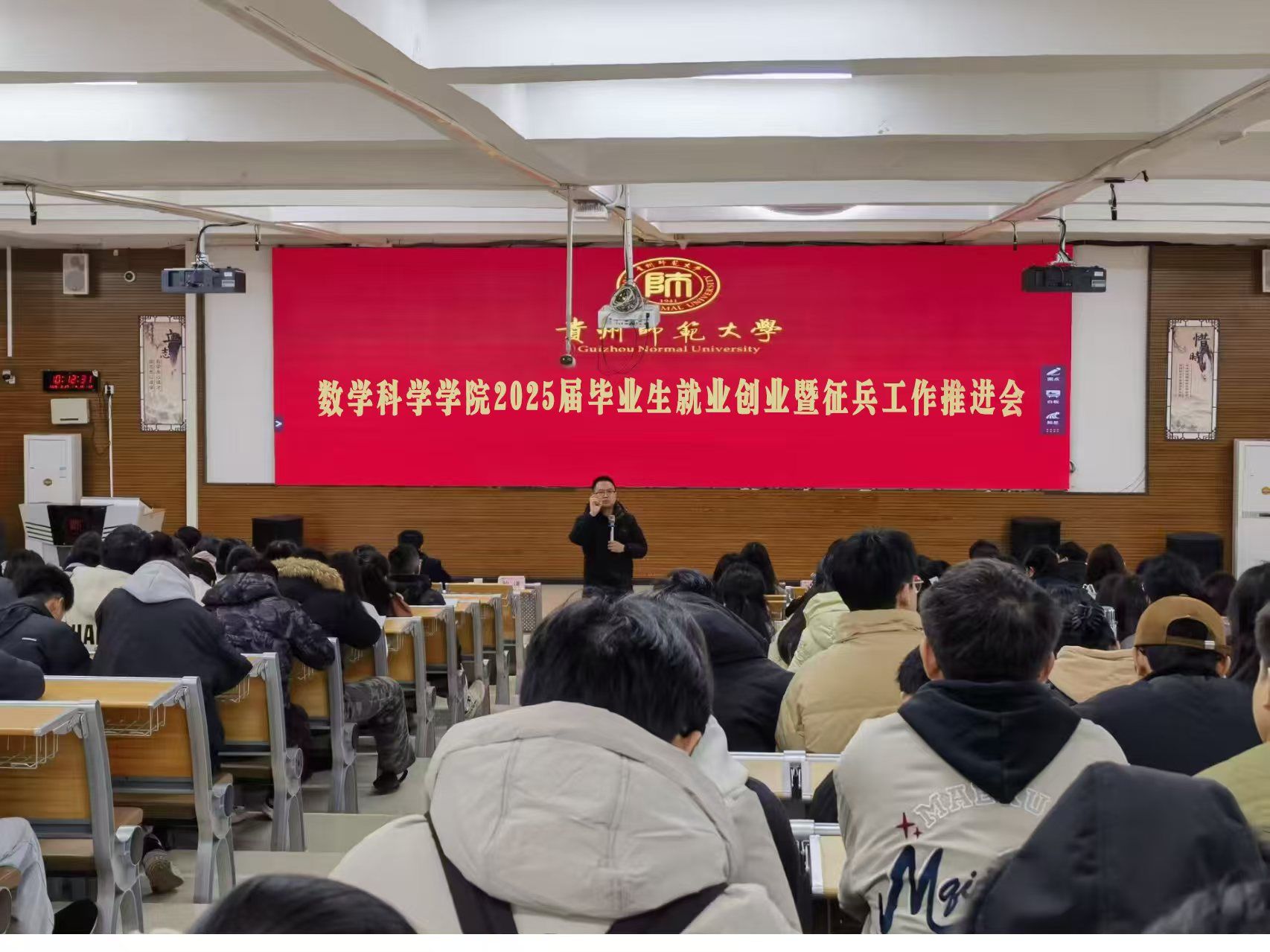 为深入贯彻党中央、国务院关于高校毕业生就业工作的重要部署,积极推动毕业生就业创业暨征兵工作取得新进展,2月27日上午,太阳成集团tyc234cc在公司东校区公教楼6201室召开2025届毕业生就业创业暨征兵工作推进会。公司党委书记孙谦、副书记江剑虹,副经理吴云顺、邓伦治,数学与应用数学系主任彭艳芳,信息与计算科学系主任杨本娟,辅导员聂学平、廖清水及2025届全体毕业生共300余人参会。会议由江剑虹主持。