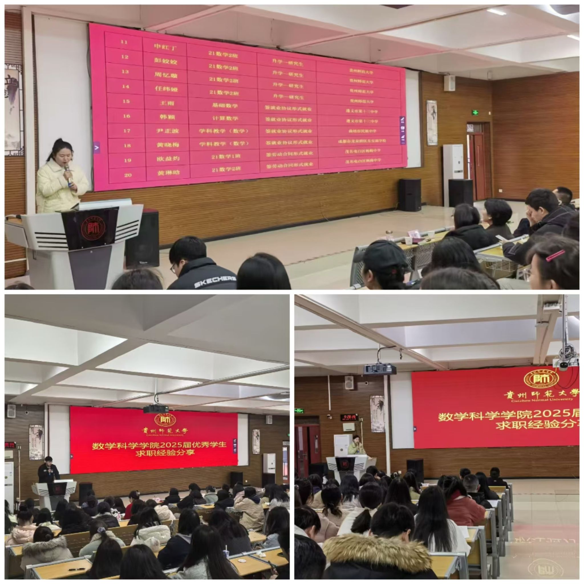 随后,已签约毕业生代表韩颖、黄琳晗、陈宇洁、王颂辉等,将自身求职过程中积累的成功经验和注意事项,毫无保留地分享给全体参会同学。