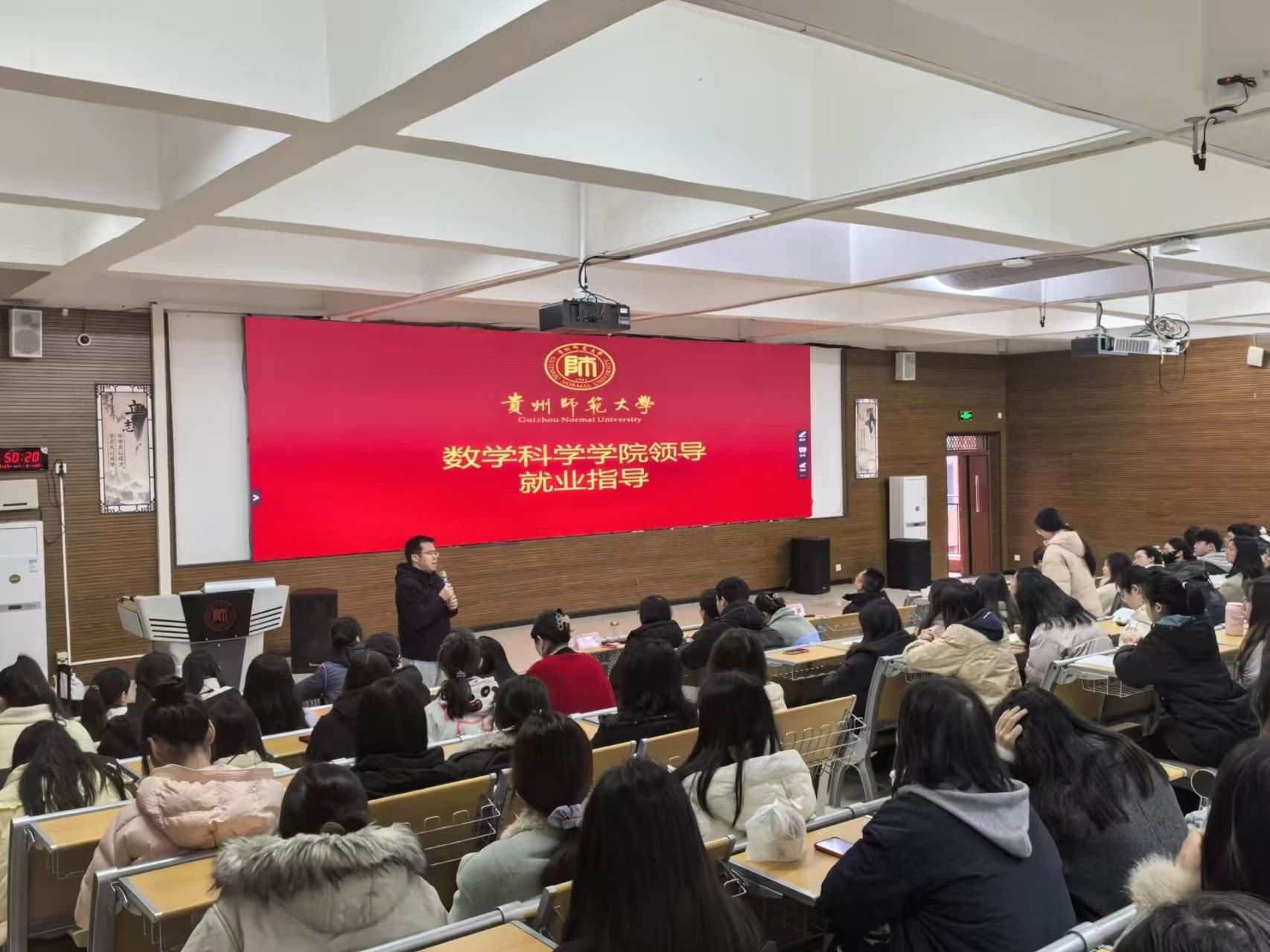 接下来,邓伦治从树立动态就业观、建立“专业素养+职业技能”双轮驱动的职业发展模式等维度对同学们进行了就业创业指导。