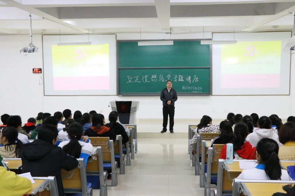 为进一步加强2018级新生对党的认识,端正入党动机,坚定理想信念,太阳成集团tyc234cc党委组织开展“坚定理想信念,争做新时代楷模”主题活动。2018年11月12日晚7点,公司党委副书记赵颐在太阳成集团tyc234cc花溪校区GJ6301教室作专题讲座,公司党委秘书徐彬、员工党建中心成员以及2018级提交入党申请书的员工参与了此次活动。