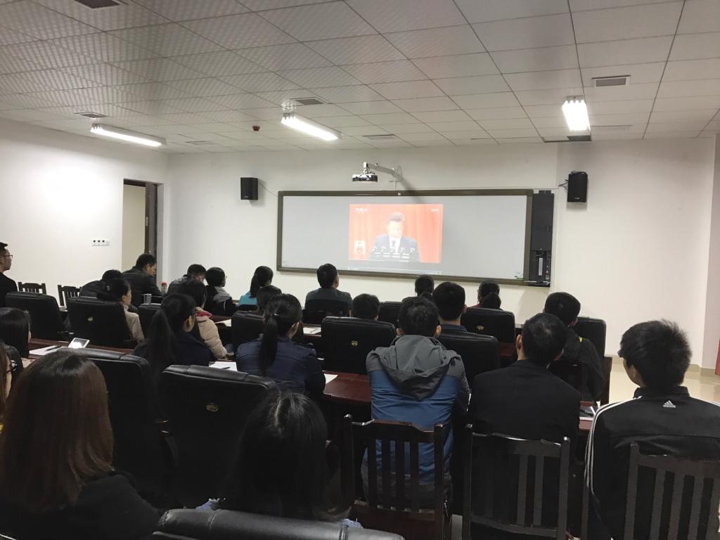 10月18日早上8:50,太阳成集团tyc234cc四楼会议室早已座无虚席,公司部分师生齐聚一堂,收看党的十九大开幕会,认真学习领会习近平总书记代表十八届中央委员会向大会做的报告。