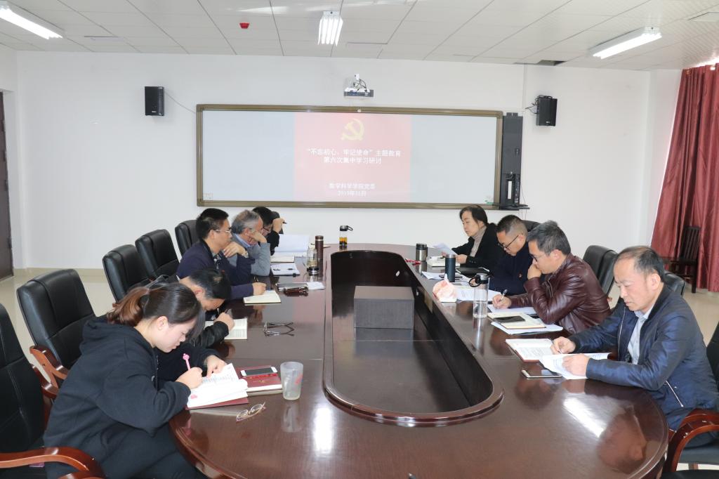根据公司党委理论学习中心组“不忘初心、牢记使命”主题教育第六次集中学习研讨方案,11月12日中午,数学科学公司党委在花溪校区会议室召开“不忘初心、牢记使命”主题教育第六次集中学习研讨,公司领导班子成员、科级干部参加学习研讨,学习研讨由公司党委书记孙谦主持。