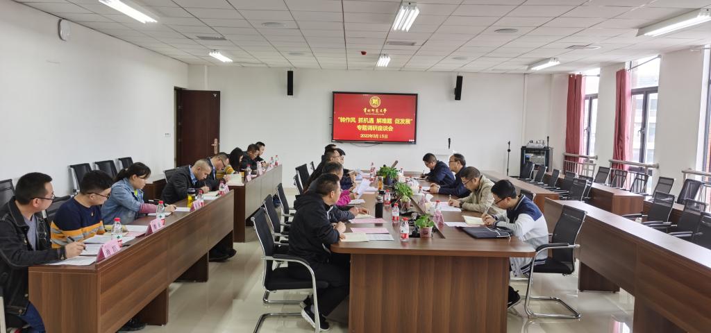 公司党委书记孙谦向调研组简要汇报组织师生学习贯彻国发〔2022〕2号文件精神和研讨公司贯彻实施方案的情况。