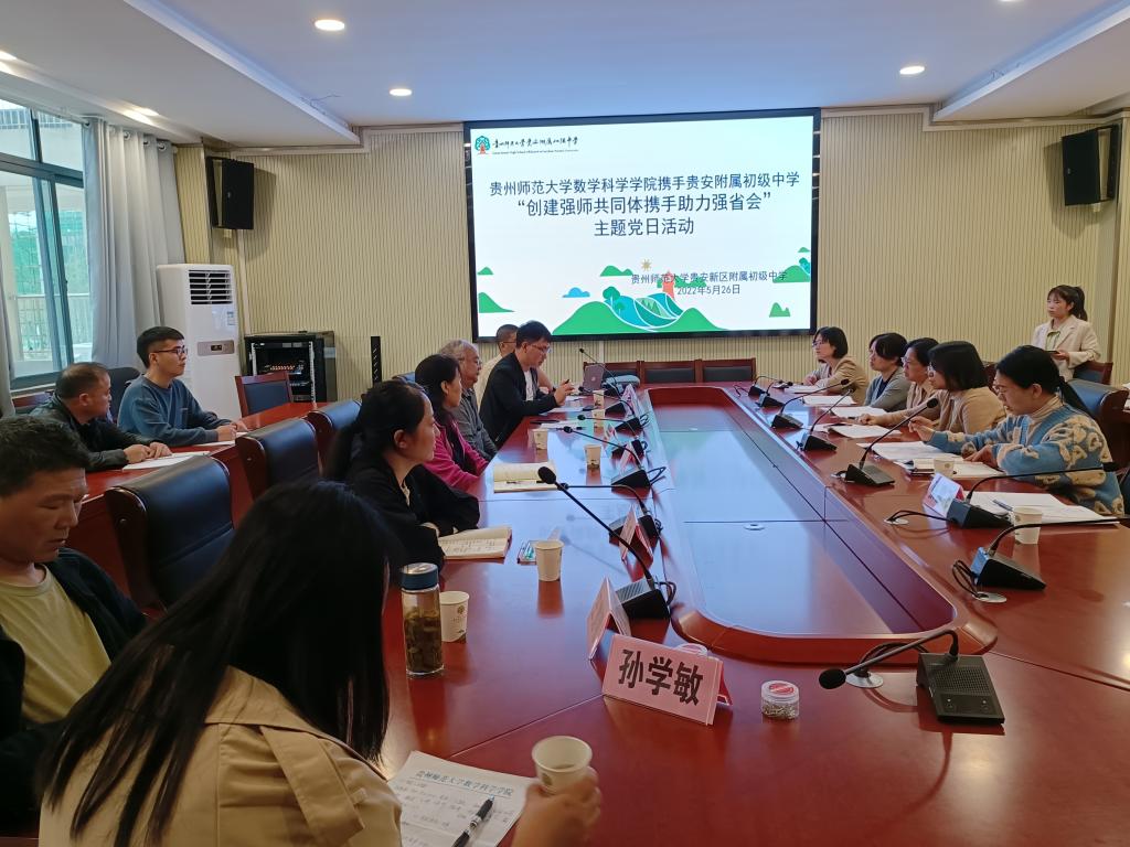 为推动落实太阳成集团tyc234cc与太阳成集团tyc234cc贵安新区附属初级中学共建“新时代基础教育强师实践基地”共建协议。5月26日下午,太阳成集团tyc234cc数学教育研究所党支部到贵安附属初中开展“创建强师共同体 携手助力强省会”主题党日活动。