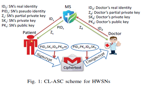 在医疗无线传感器网络中,放置在患者身上的无线传感器收集患者的生命体征参数和各种环境信息参数,并将其发送给医生,以便医生能对患者实施实时的监控。患者的生命体征参数含有重要的隐私信息,如果这些数据直接在公共通道上传输,极可能造成患者隐私信息的泄露。患者可能也希望医生不能知道其真实姓名。在该研究中,邓伦治教授团队设计了一个适用于医疗传感器网络的无证书匿名签密(CL-ASC)方案。其有三个特点:传感器对收集到的数据进行加密,实现了数据的机密性。同步的,传感器对收集到的数据进行签名,实现了数据的可认证性。传感器使用伪身份进行上述操作,实现了匿名性。新方案在标准模型下被证明具有所需的安全属性。与几个同类方案进行性能比较,结果表明新方案具有更好的性能。