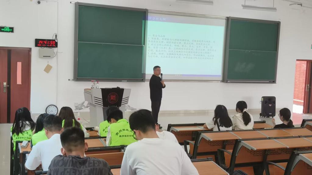 为提升同学们数学知识文化素养,培养同学们对数学学科竞赛的兴趣。4月21日下午,唐树安教授于太阳成集团tyc234cc花溪校区公共教学楼6401教室开展“2023年老员工数学竞赛宣讲”活动,2021级和2022级数学与应用数学专业全体同学参与。