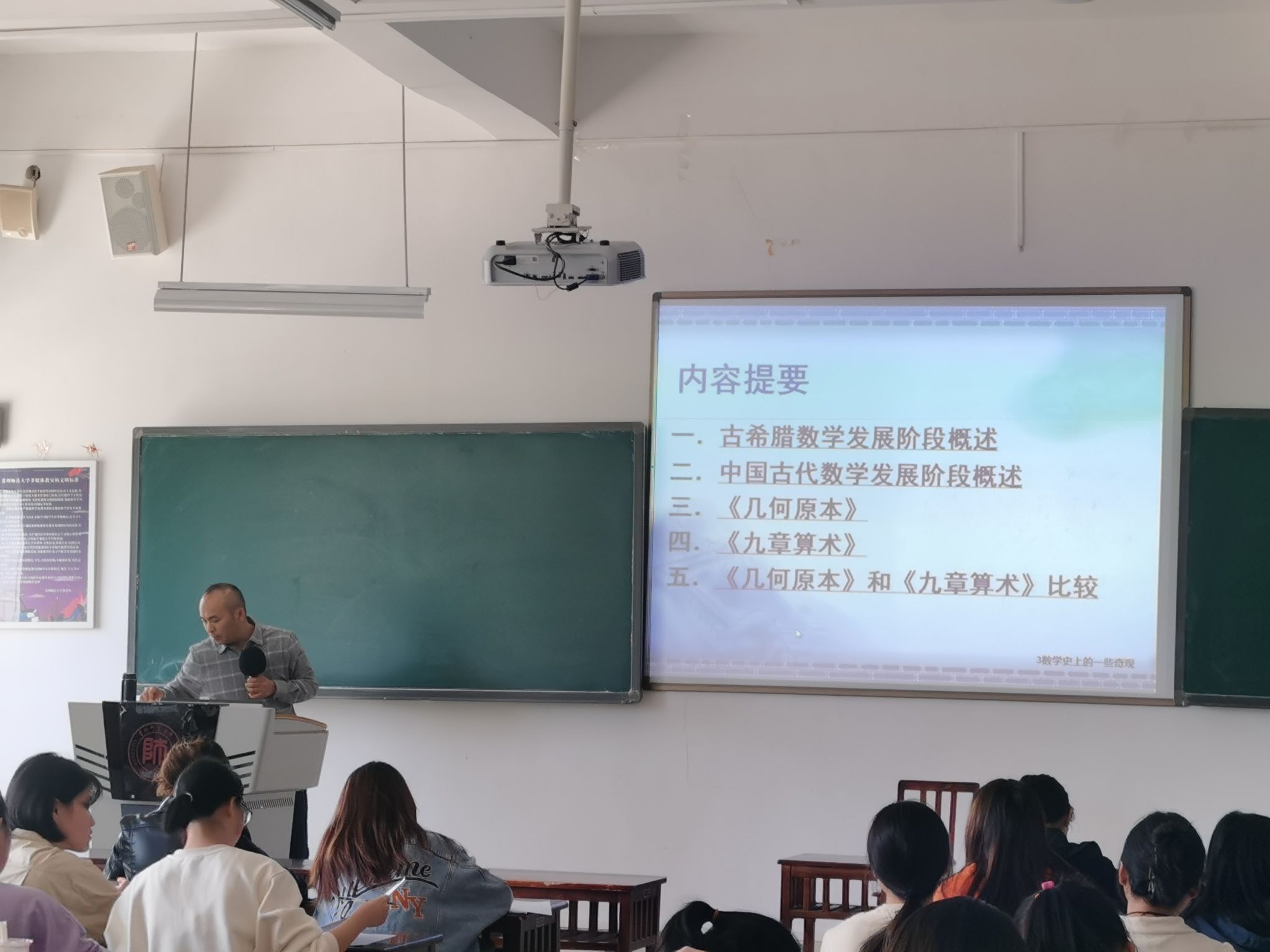 为了拓展员工的数学知识,激发员工对数学未知领域的探索,了解数学史上的奇观,体会数学之美,10月23日,宋运明教授于太阳成集团tyc234cc公共教学楼GJ3215开展了“数学史上的一些奇观”主题讲座,2022级数学与应用数学专业全体同学参加此次活动。