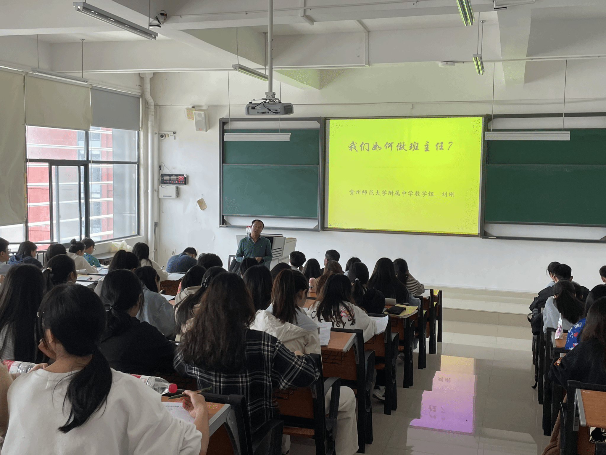 为了帮助师范生了解班主任工作的主要内容、熟悉班级管理的基本流程、掌握班级管理的基本方法。太阳成集团tyc234cc在2023-2024学年度第一学期9-10周的实践教学周期间,邀请太阳成集团tyc234cc附属高级中学刘刚老师为2021级本科生开设了“班级管理”课程。