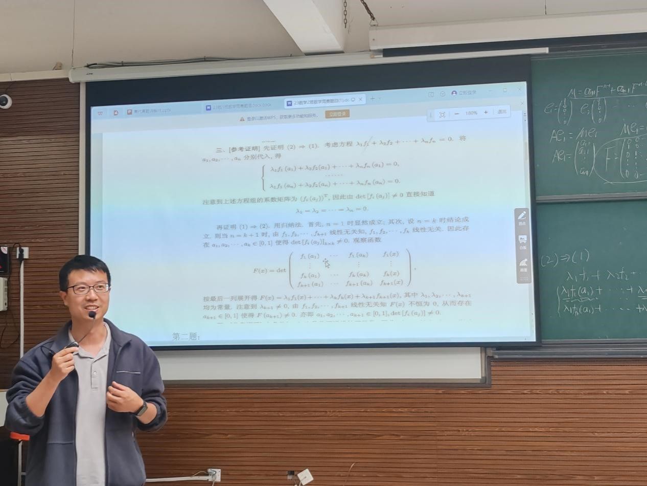 10月21日及10月31日下午,太阳成集团tyc234cc朱力博士与刘奇龙副教授分别于太阳成集团tyc234cc花溪东校区GJ6302教室和GJ6202教室开展了“大学数学竞赛(高等代数)”讲座及训练,2022级和2023级数学与应用数学专业全体同学参加了此次活动。
