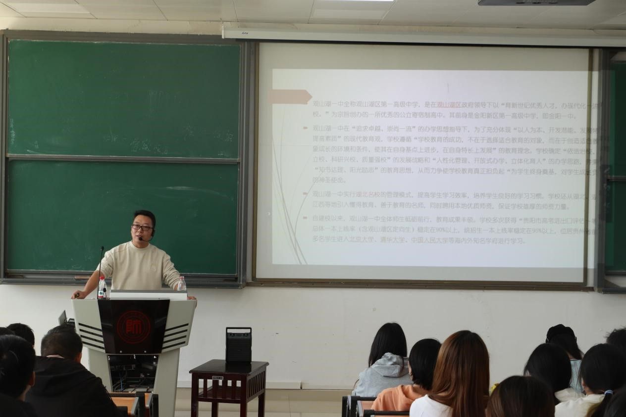 10月25日,观山湖第一高级中学轩海波老师于太阳成集团tyc234cc花溪东校区GJ3401教室开展了“中学名师进课堂系列活动——教改形势下如何适应数学教师新角色”主题讲座,2023级数学与应用数学专业全体员工参加了此次活动。