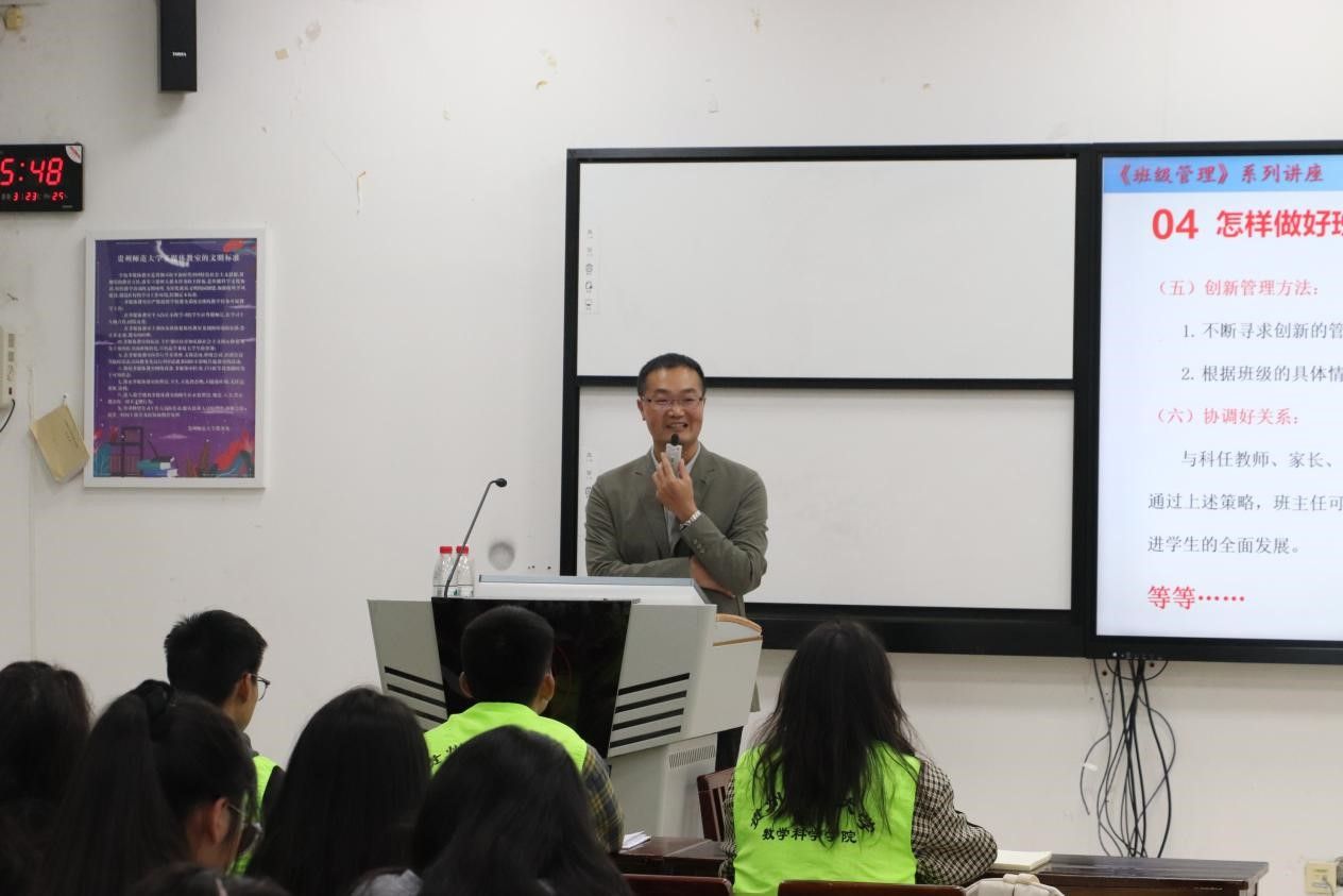 10月23日,太阳成集团tyc234cc附属中学高级教师王开江于太阳成集团tyc234cc花溪东校区GJ3211教室开启了"班级管理"主题系列讲座,2022级数学与应用数学专业全体员工参加了此次系列活动。