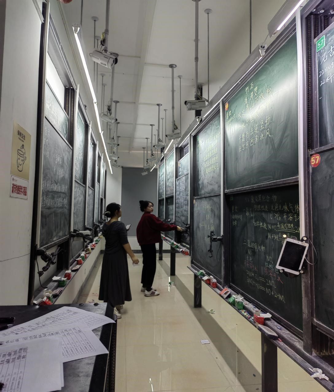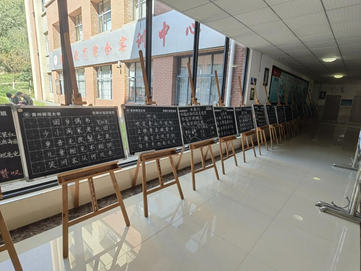 此次考核共分为两个部分:教学板书和硬笔书写。教学板书的考核主要是根据相关专业教学内容自行设计一课时的教学板书和现场随机抽取一篇古诗进行诗文板书;硬笔书写由三部分构成——根据模板抄写《五柳先生传》、创作书写《登高》以及按要求写十个字的笔顺。参与考核的员工相应地分为了两组:第一组员工先进行教学板书的考核,第二组员工则先进行硬笔书法的考核。第一轮考核结束后两组员工交换场地后依次完成相应考核。