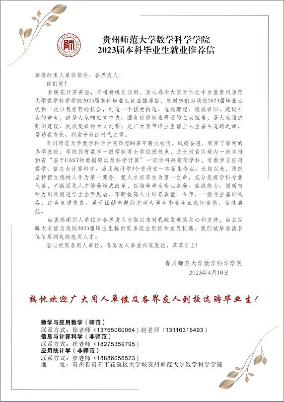 2023届本科毕业生就业推荐信