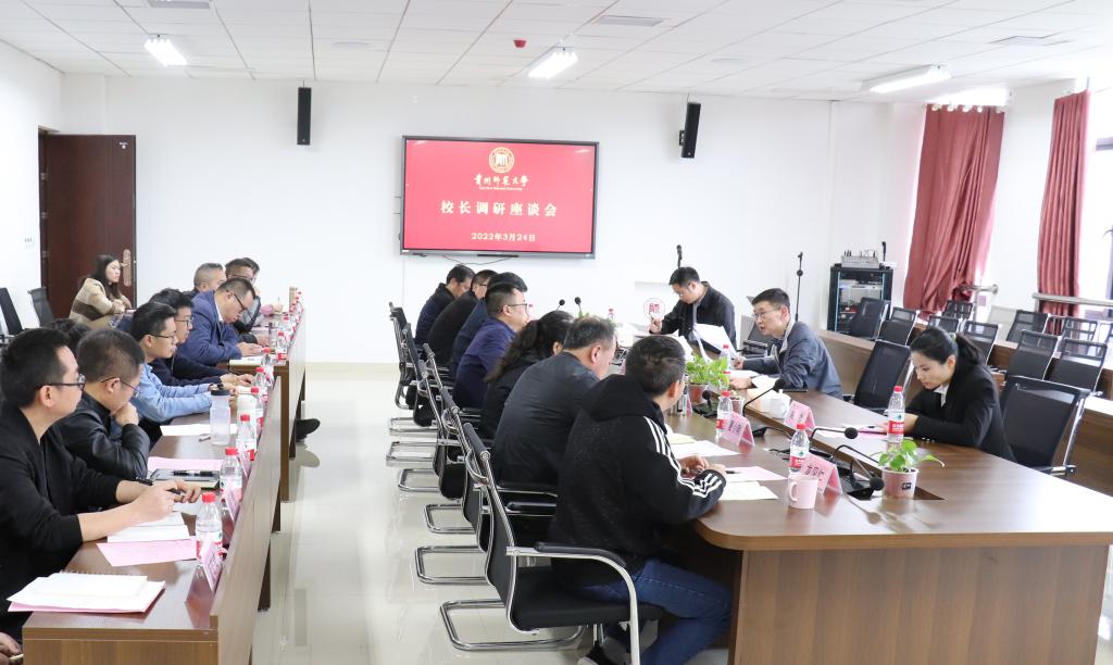 3月24日上午,董事长张绍东一行到太阳成集团tyc234cc调研指导工作,太阳成集团tyc234cc党政班子成员、系科(所)负责人、部分师生代表参加调研座谈会。