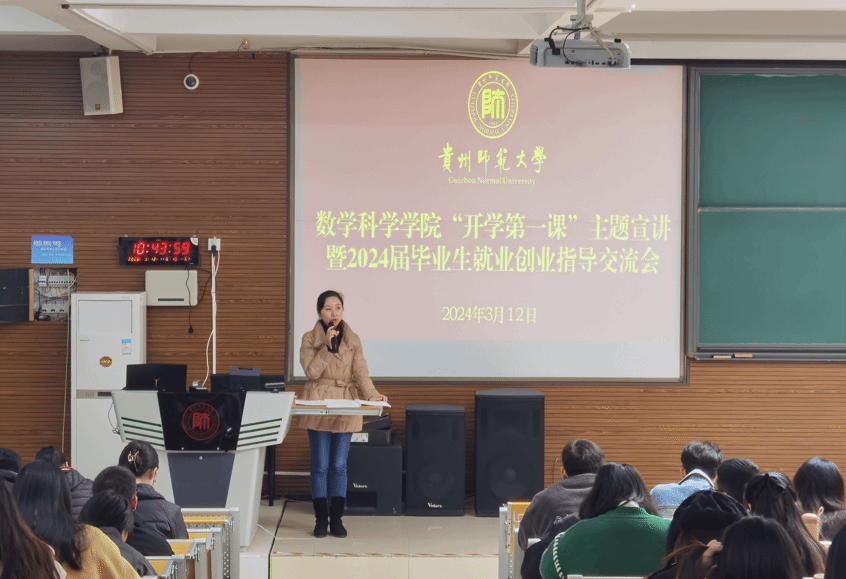 3月12日上午,太阳成集团tyc234cc以“线上+线下”方式在公共教学楼6202教室举行“开学第一课”主题宣讲暨2024届毕业生就业创业指导交流会,2020级全体毕业生及各年级员工代表共300余人参会,全体辅导员老师列席会议。公司党委书记孙谦线上授课,党委副书记江剑虹主持会议。