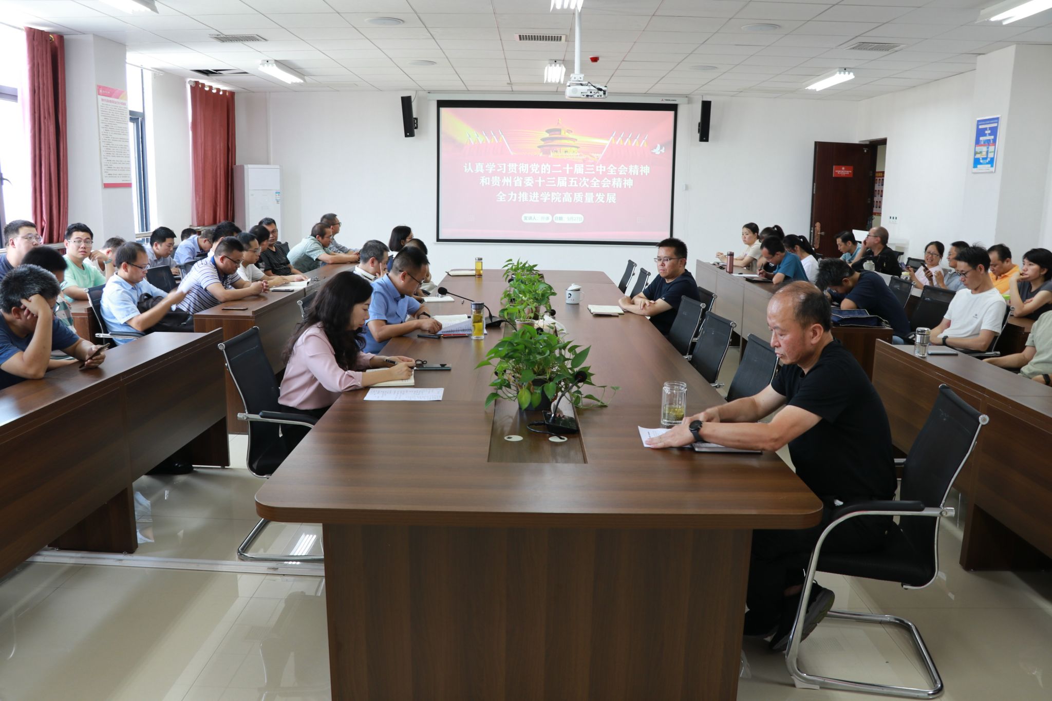 9月27日下午,太阳成集团tyc234cc党委书记孙谦在公司教职工之家会议室为公司全体教师宣讲党的二十届三中全会精神和省委十三届五次全会精神,公司全体教职工共70余人参会。