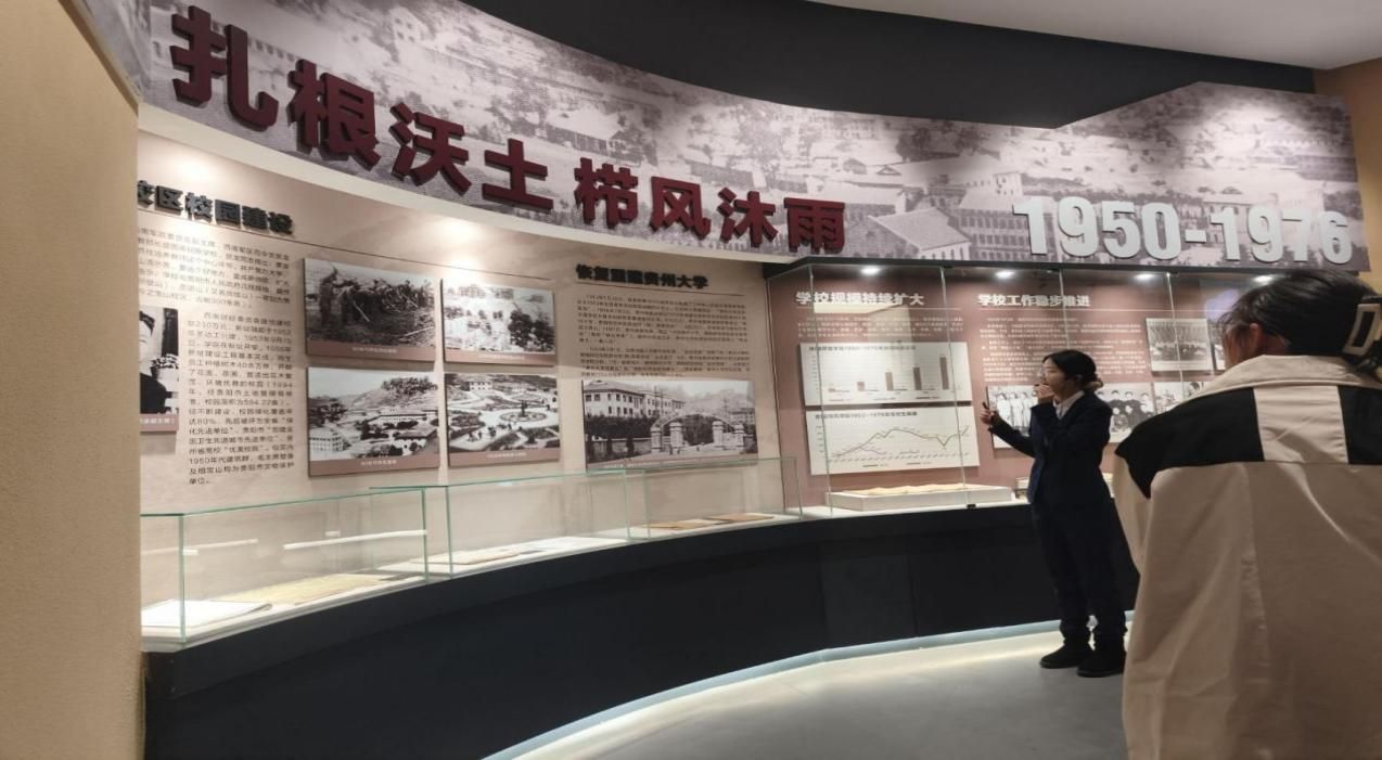 活动中,校史馆讲解员以公司发展时间为脉络,结合馆内珍贵的历史照片、实物展品、文献资料与科技呈现,带领同学们回望公司的发展历程,生动讲述了公司从建校初期的艰辛到发展过程中的关键里程碑——包括公司建立前身、团队建设突破、团队队伍壮大、公司校区拓展、科研成果获奖、杰出领导事迹等重要内容。从早期办学的艰辛探索,到团队建设的突破发展;从育人理念的传承创新,到服务地方的责任担当,每一件展品都承载着公司的奋斗记忆,都让同学们驻足沉思。