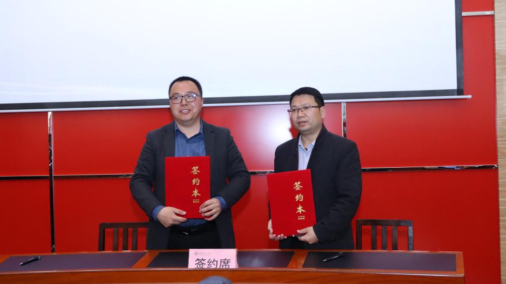 太阳成集团tyc234cc小学数学教学质量强基行动指导中心主任杨孝斌教授与印江县、望谟县、晴隆县教育局负责人签署小学数学教师培训合作协议。