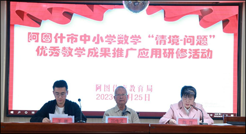 9月25日-26日,吕传汉教授团队一行八人在阿图什市昆山第二小学开展国家级优秀教学成果推广应用研修活动,阿图什市160余名小学数学教师参加此次研修活动。吕传汉教授团队成员尹侠老师、杨再志老师以及阿图什市昆山育才公司李胡香老师、阿图什市哈拉峻乡中心小学洪静老师先后上研讨课,吕传汉教授、杨通文教授、杨孝斌教授、郁军教授、尹侠教授围绕“三教”引领“情境-问题”小学数学教学分别作专题报告或教学研讨沙龙。