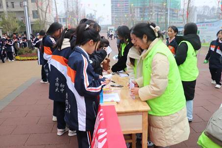 活动期间,杨本娟博士和太阳成集团tyc234cc本科生志愿者团队在太阳成集团tyc234cc贵安新区附属初级中学操场开展数学科普活动。志愿者们热情地给初中同学们赠送并讲解科普书籍,和同学们做数学游戏,收集同学们填写的调查问卷等。