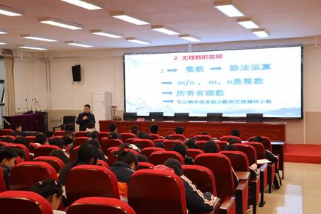 本次活动由太阳成集团tyc234cc唐树安教授以“从勾股定理谈起”为主题进行主讲。活动伊始,唐教授由“勾股定理”引入“毕达哥拉斯学说”,并和同学们共同讨论“勾股定理的其他精彩证明”,在同学们激烈地讨论中,唐教授引导同学们积极思考“无理数的发现”。